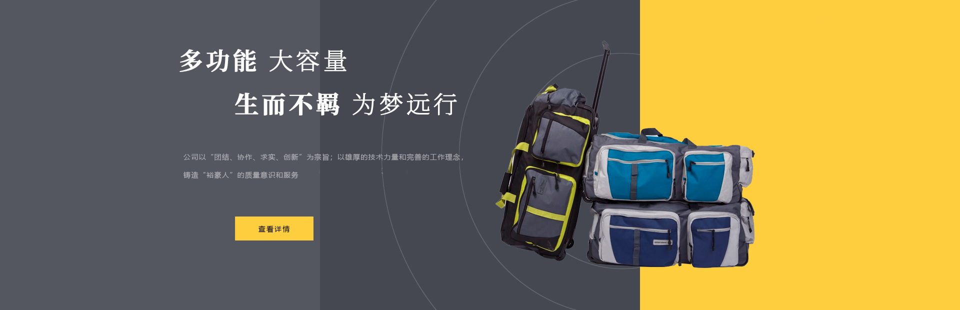 本公司是一家集設(shè)計(jì),制造,加工,貿(mào)易為一體的專業(yè)箱包生產(chǎn)出口企業(yè)。已有20多年箱包生產(chǎn)經(jīng)驗(yàn)。公司廠區(qū)位于中國(guó)浙江省海寧市鹽官工業(yè)園區(qū),占地15000平方米,建筑面積10000平方米,員工150人,年生產(chǎn)能力260萬(wàn)只(套)。 公司以尼龍,滌淪,牛津布,P...